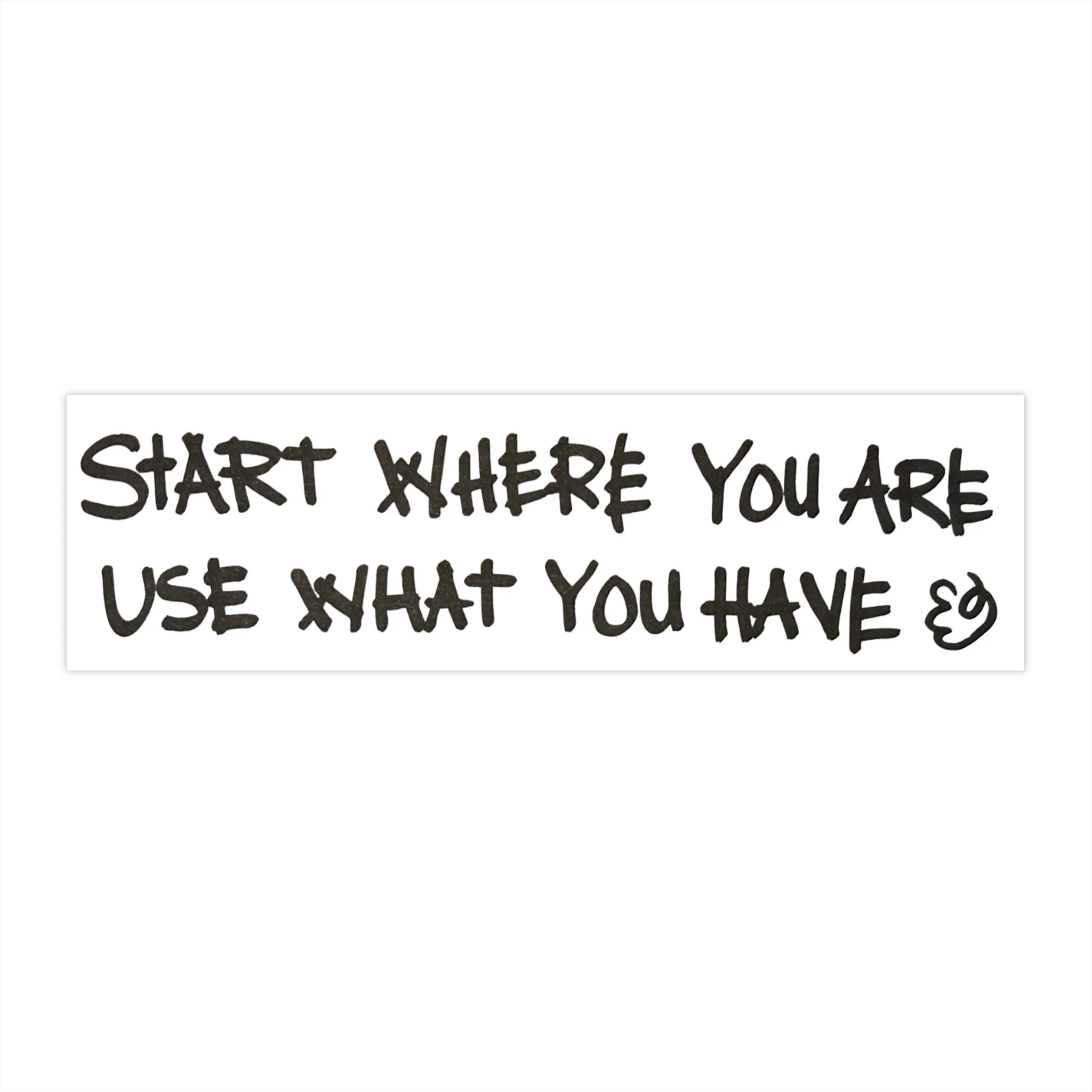 GARDENS OF THE FUTURE is grounded in the philosophy: START WHERE YOU ARE, USE WHAT YOU HAVE. This bumper sticker is a perfect reminder that this motto works for nearly everything.